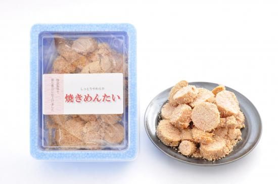 辛子調味液でじっくり煮込み、旨味をしっかり中まで染み込ませた後、表面をこんがりと焼き上げた「焼き明太」。