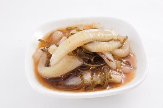 - 原材料:イカ(ベトナム)、昆布、すけとうだらの卵、水飴、発酵調味料、食塩、柚子皮、柚子胡椒、合わせ出汁(焼きアゴ、昆布)、唐辛子、砂糖/調味料(アミノ酸等)、ソルビット(甘味料)、酒精、トレハロース、酸化防止剤(V・C)、ph調整剤、増粘多糖類、ナイアシン、酵素、発色剤(亜硝酸Na)